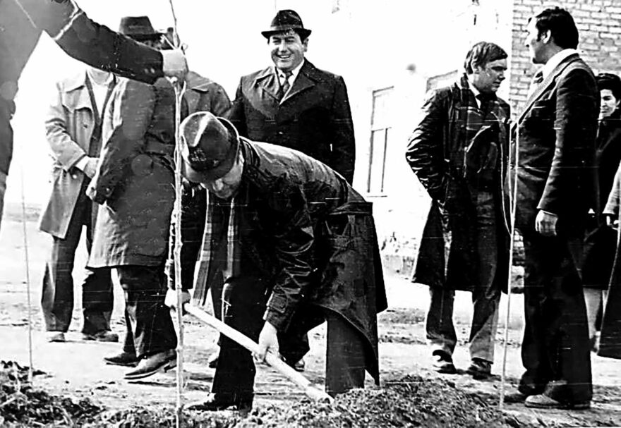 Suratlarda: Erkin Vohidov maktab bog'iga ko'chat o'tqazmoqda; shoir ekkan daraxt ko'kka bo'y cho'zgan.