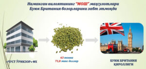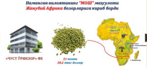 Tayyor mosh mahsulotlari ilk marotaba Hindistonga jo'natilgan bo'lsa, bugunga kelib Xitoy, Malayziya, Indoneziya hamda Yevropa davlatlariga eksport qilinmoqda.
