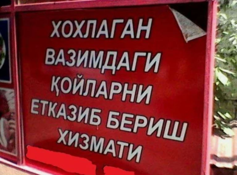 Quyidagi e'lonni olaylik. Na kulishga, na yig'lashga hayronsan kishi. Bu savodsizlikning, e'tiborsizlikning yana bir namunasi.
