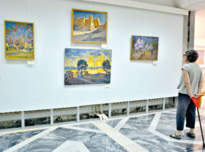 Mana, taniqli rassom J.Lepesov chizgan “Qo'shiq” rasmida muxlislarning qo'shiqni miriqib tinglayotganlari jonli tarzda aks etgan. Rassom M.Nedbayloning mato, moybo'yoqda aks etgan “Yozgi dam olish kuni” rasmi ham juda ajoyib chiqibdi, bolalar onalari bilan ko'm-ko'k o'tloq va daraxtlarning ostida o'ynab yurishibdi. Ona tabiatning go'zalligi, jozibasi, tarovati shundayligicha rasmga ko'chgandek. Rassomning mahorati shundaki, bu san'at namunasi oddiy va juda tabiiy chiqqan. Yoki J.To'legenovning yog'ochdan mohirona ishlangan “Bobo va nabira”, A.Seytimetovning ham yog'ochga o'yib ishlangan “Chanqoq” asarlari tomoshabin va san'at muxlislarining e'tiborida bo'lishi tabiiy. Bulardan tashqari, bizga mashhur rassom O'.Tansiqboyevning mato, moybo'yoqda ishlangan “Chirchiq”, “Burchmulla vodiysi”, “Kurash”, “Karvon”, “Yo'l”, “Hovli” asarlari tabiiyligi, jozibadorligi, tasvirning atrof-muhit va tabiat bilan hamohangligi bilan juda ma'qul bo'ldi.